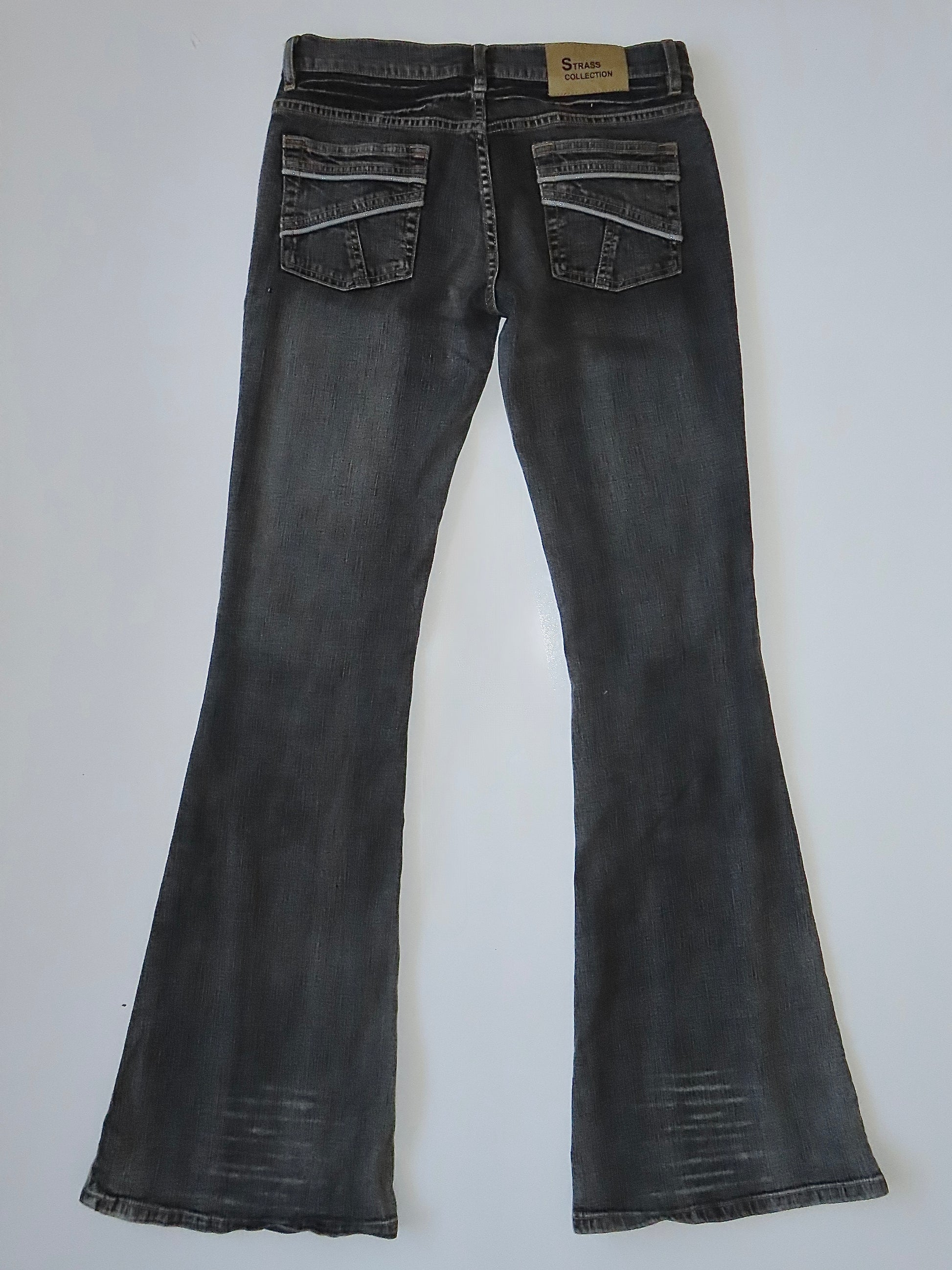 EARLY 00S STRASS COLLECTION DARK WASH LOW RISE BOOTCUT JEANS / FR 36
