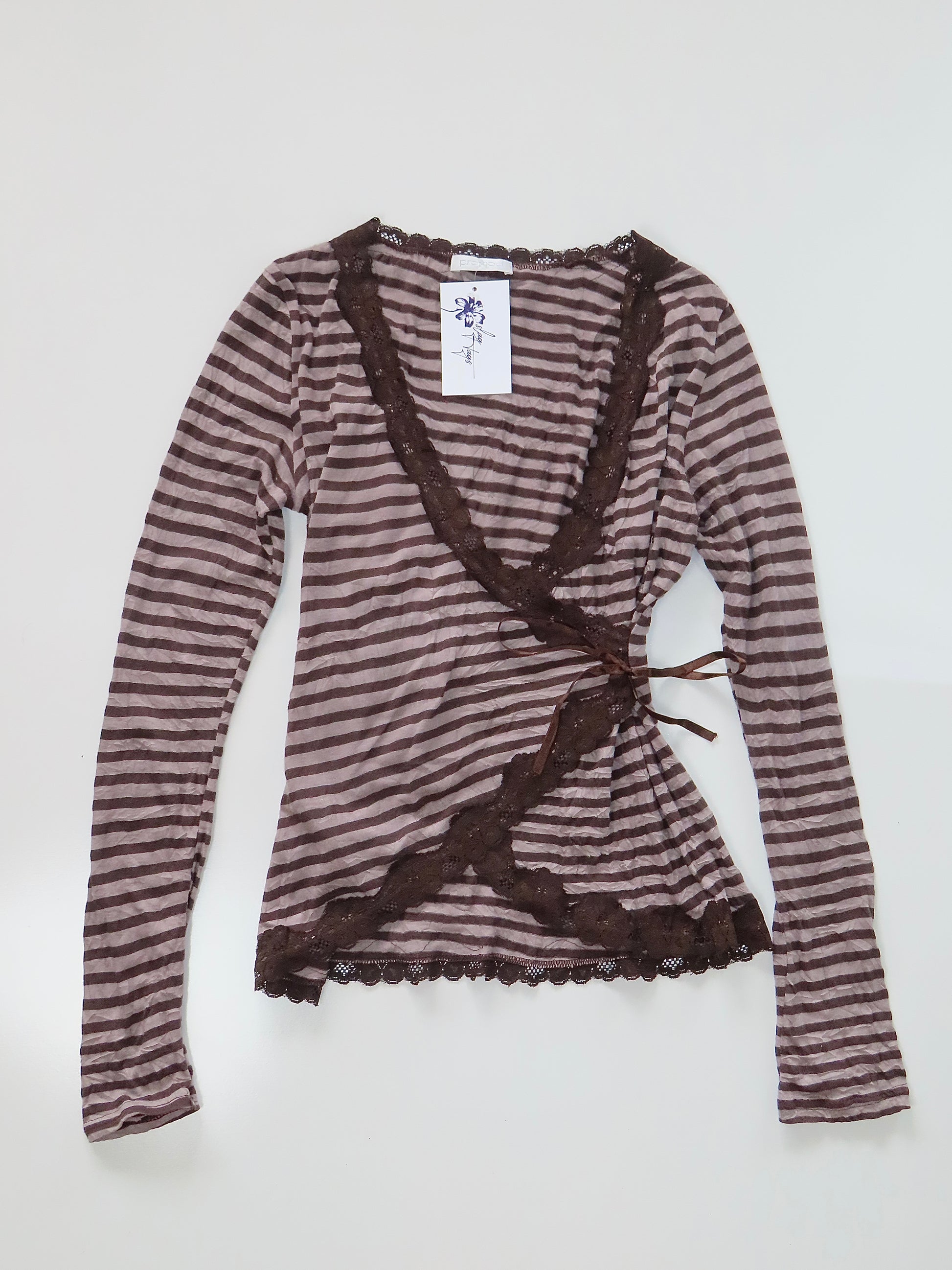PROMOD STRIPED WRAP STYLE LONG SLEEVE WITH LACE TRIM / MEDIUM